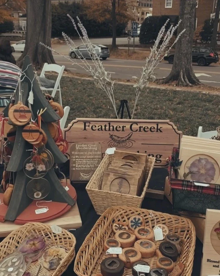 Feather Creek Woodworking began in 2021 as a simple passion project, crafting wooden items for family and friends. What started as a hobby quickly grew into something more. With each piece we created, our love for the process deepened, and so did our vision of what was possible. By early 2022, we officially named our small operation after the serene waterway near our home that attracts a variety of beautiful birds, reflecting the natural inspiration behind our work.